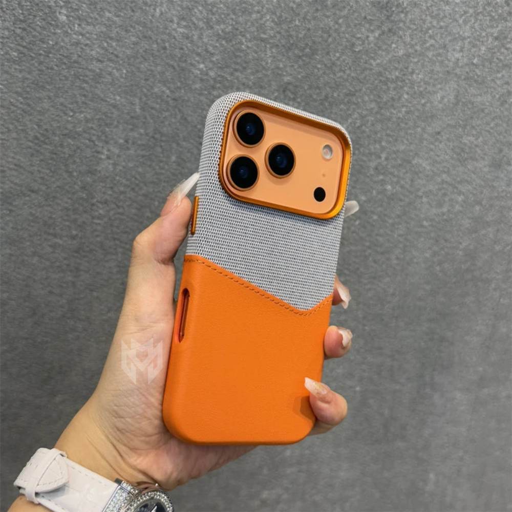 Capa de Tecido e Couro para iPhone com Porta Cartões