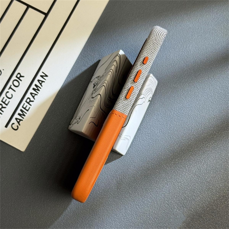 Capa de Tecido e Couro para iPhone com Porta Cartões