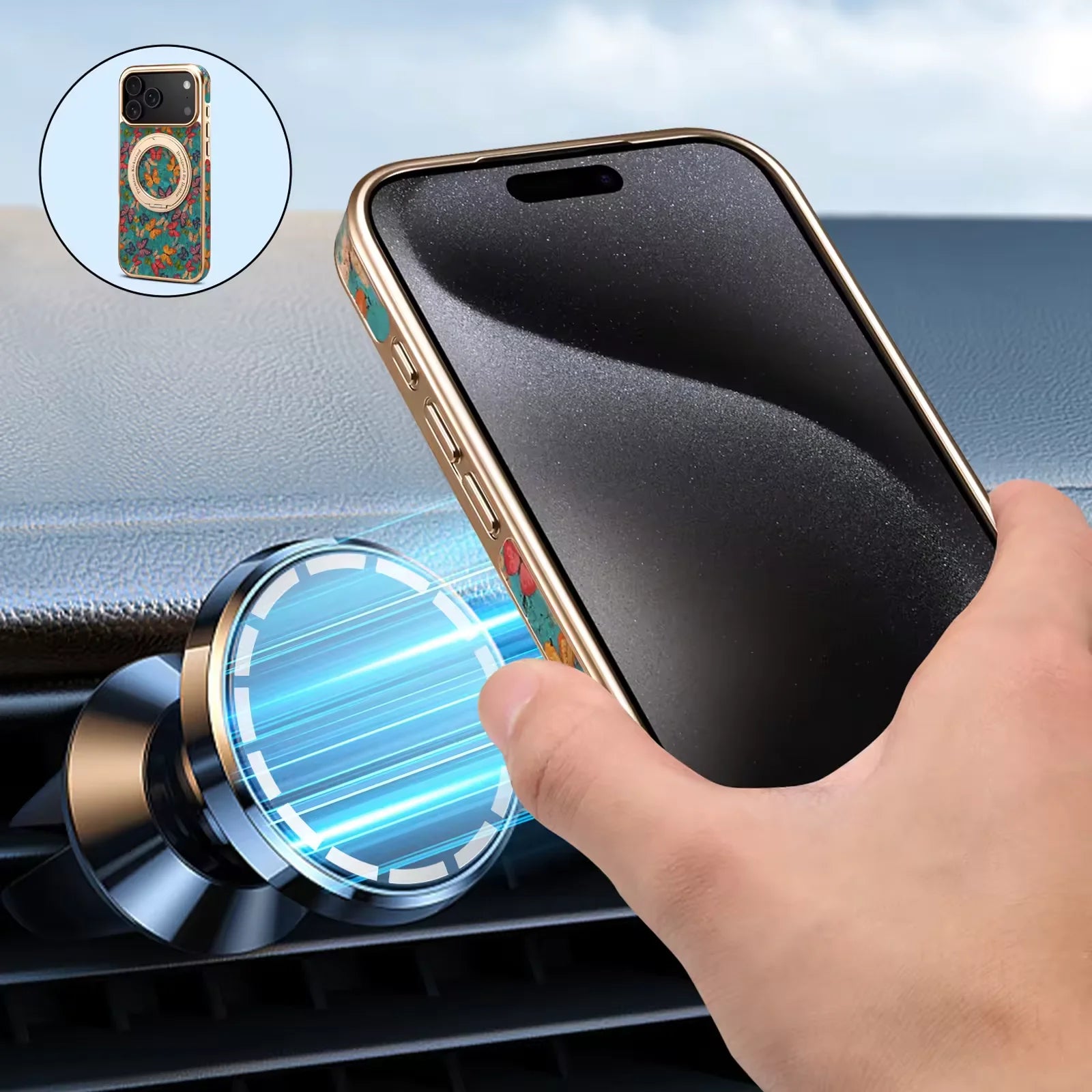 Equipado com ímãs potentes, ele oferece estabilidade para apoiar o iPhone sem deslizar ou tombar — perfeito para mesa, carro ou qualquer superfície plana.