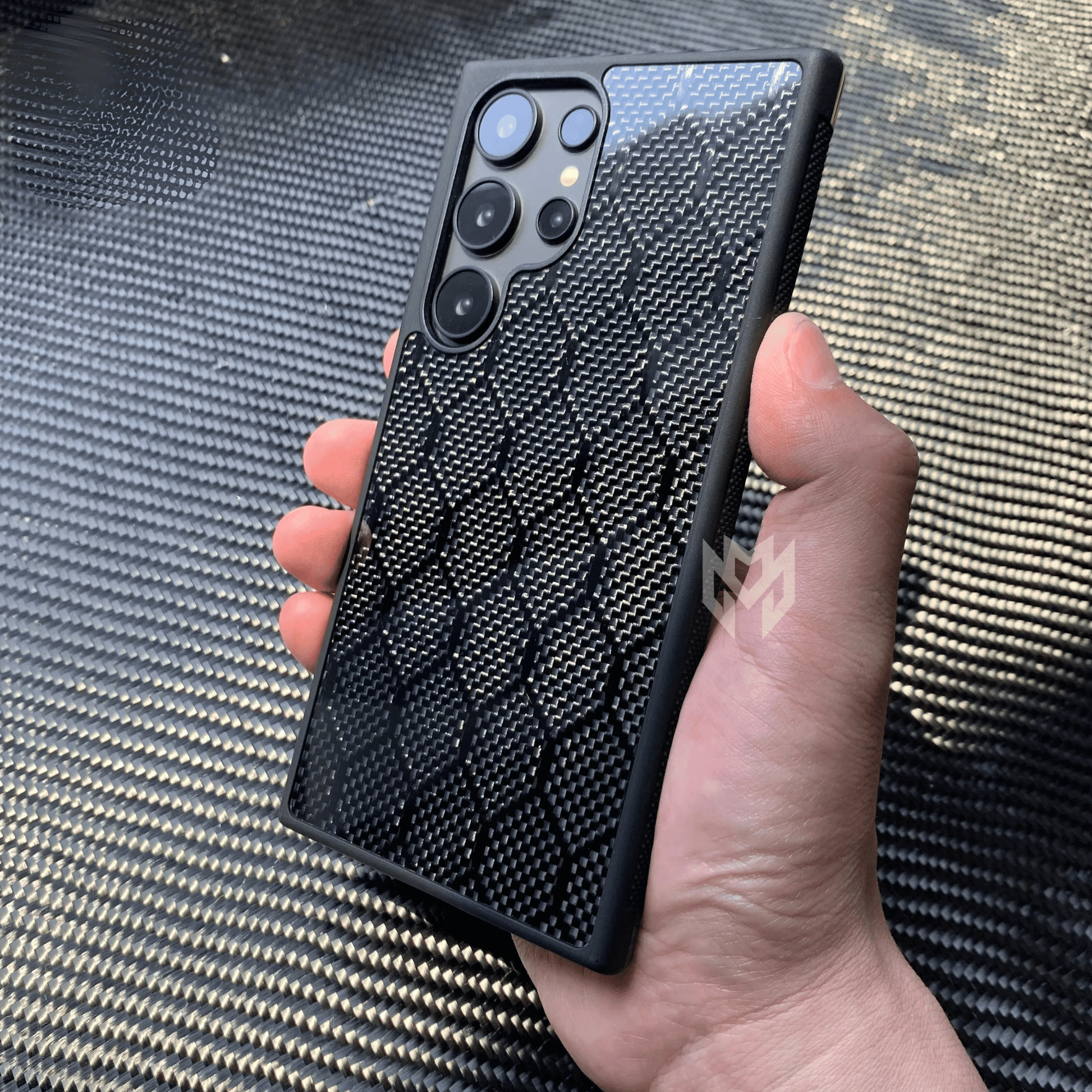 Case Samsung Fibra de Carbono com Design Único e Personalizado, acabamento em padrão tridimensional cria um efeito visual incrível.
